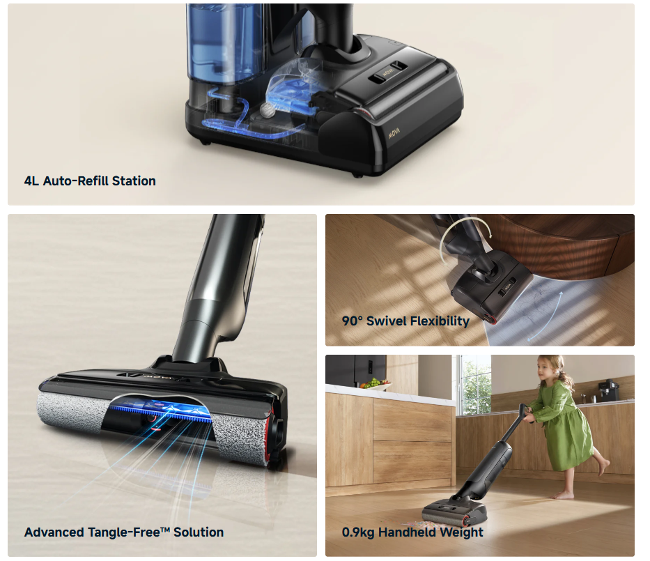 Simplifica-ti rutina de curatare cu baza automata a M10 Station, care reumple automat rezervorul de apa curata de 4L pentru pana la 7 zile** de curatare neintrerupta, fara reumpleri frecvente.