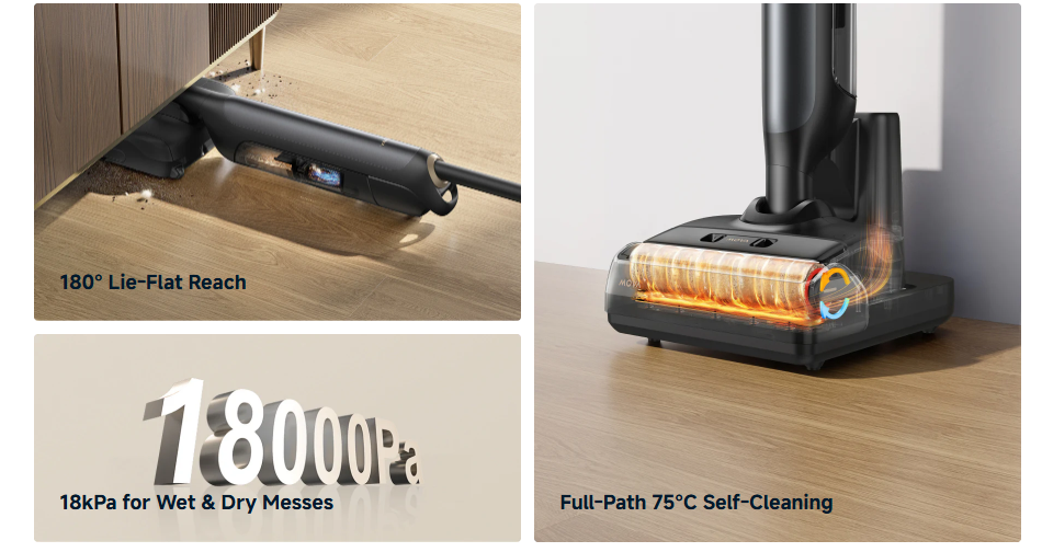 Impulsionat de un motor de 104,000RPM*, M10 ofera o putere impresionanta de aspirare de 18,000Pa*, capabila sa faca fata diferitelor tipuri de murdarie, de la resturi mari la lichide varsate, facand curatenia zilnica mai usoara.