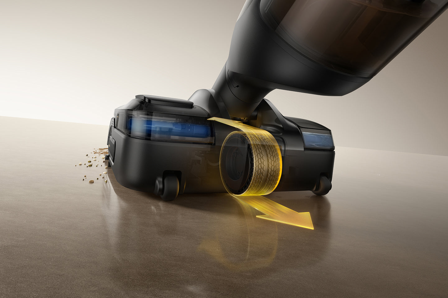 M50 Ultra dispune de o putere impresionanta de aspiratie de 22,000Pa, facand fata cu usurinta atat murdariilor uscate, cat si celor umede, de suprafata sau incrustate. In plus, aplica aproximativ 20N presiune in jos pentru a freca podeaua, eliminand eficient petele dificile.